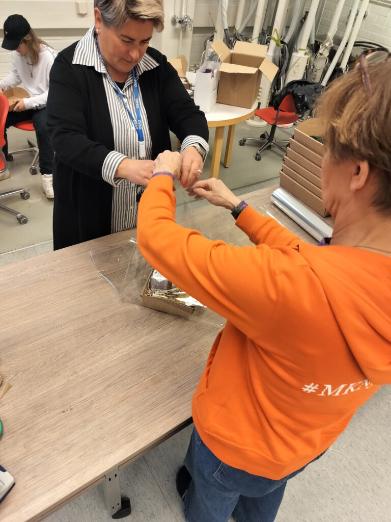 OSAOn opiskelijat osallistuivat aktiivisesti suunnitteluprosessiin: he ideoivat korien sisältöjä ja laativat markkinointitekstejä MKN asiantuntijoiden ja AFL:n edustaja Niina Keräsen ohjauksessa. OSAOn liiketalouden yksikön opettaja Margit Grönvall auttoi suunnittelemaan korien pakkaamista ja tarvittavia materiaaleja.