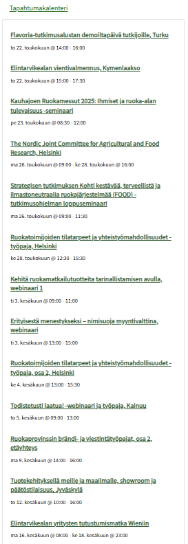 Kesäkuussa järjestetään ruoka-alan tilaisuuksia eri puolilla Suomea ja ne löytyvät Aitoja makuja -kalenterista. Voit ilmoittaa paivi.toyli@helsinki.fi, jos haluat oman tilaisuutesi kalenteriin.